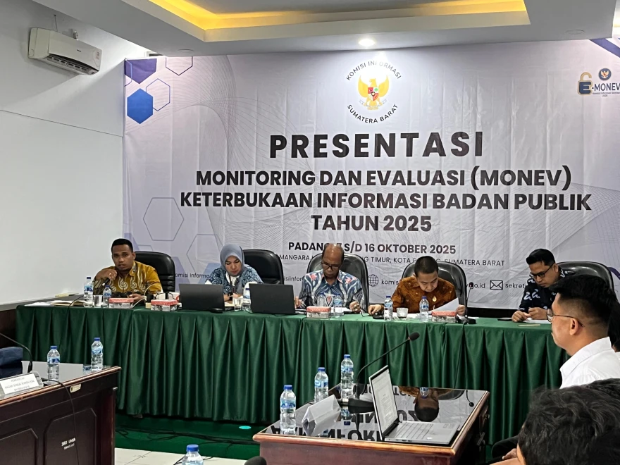 PADANG---Nagari Sungai Rumbai kembali masuk tahap Presentasi Badan Publik dalam rangkaian Monitoring dan Evaluasi (Monev) Keterbukaan Informasi Badan Publik se-Sumatera Barat Tahun 2025 yang diadakan oleh Komisi Informasi Provinsi Sumatera Barat. Nagari Sungai Rumbai tampil pada Sesi IV (pukul 15.00 s/d 16.30 WIB), Selasa, 7 Oktober 2025 bertempat di ruang sidang kantor Komisi Informasi Sumatera Barat.